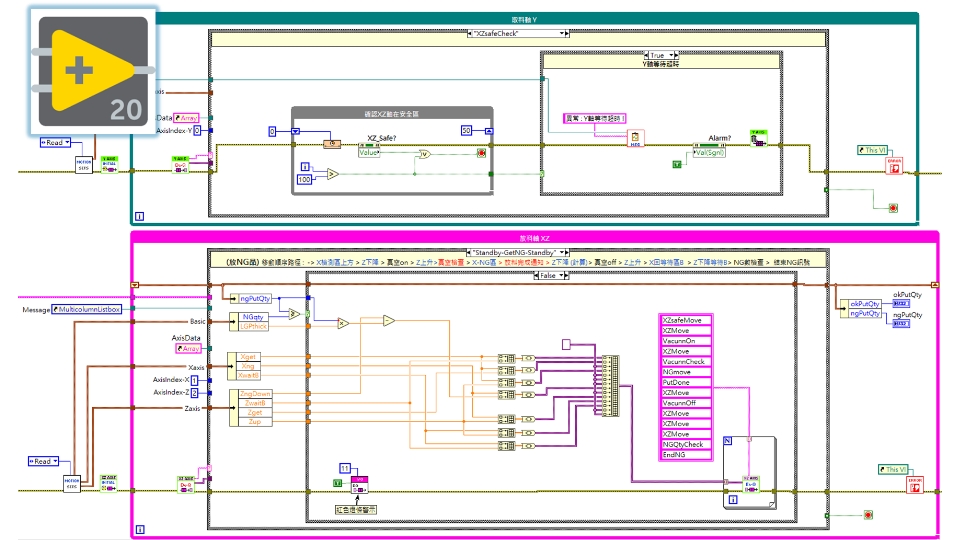 自動化除了硬體的建構基礎外,更需要軟體的結合,包括: 資料庫的應用管理、資訊數據的分析、機械手臂的視覺定位、產品的影像檢測演算等。我們以美國國家儀器所開發的LabVIEW為軟體開發核心,整合其他程式(C++、Java、Python),實現各種軟硬體的整合服務。